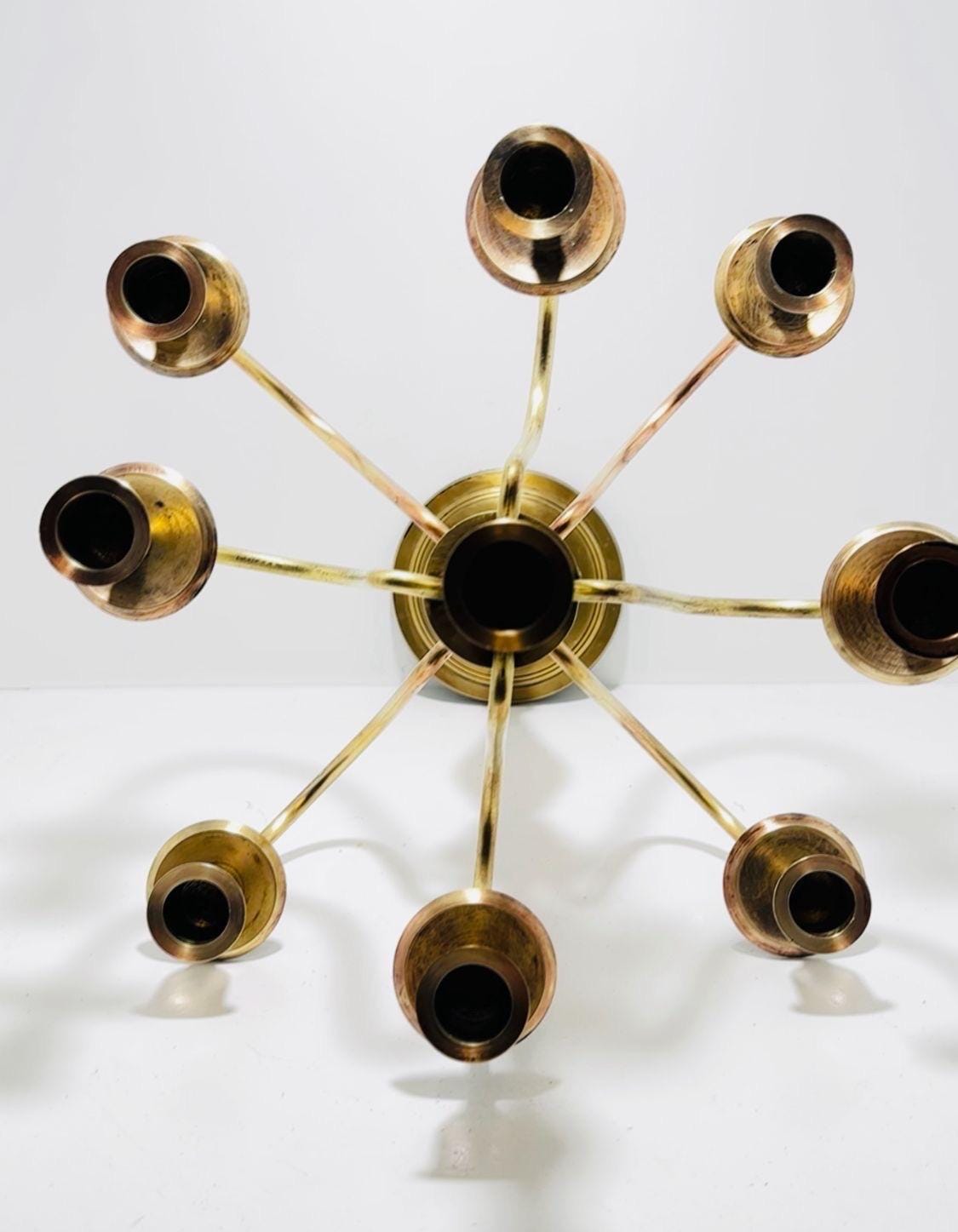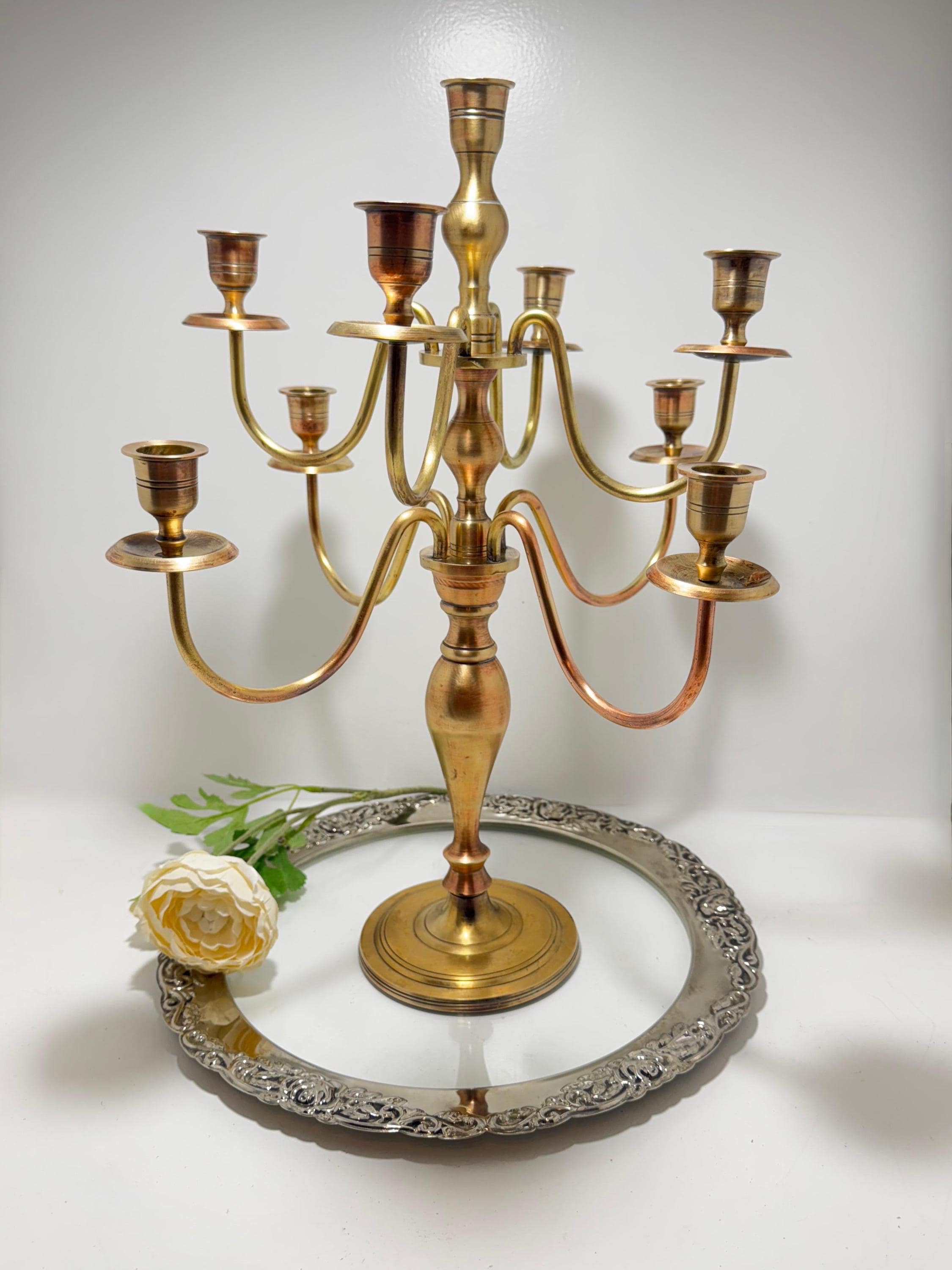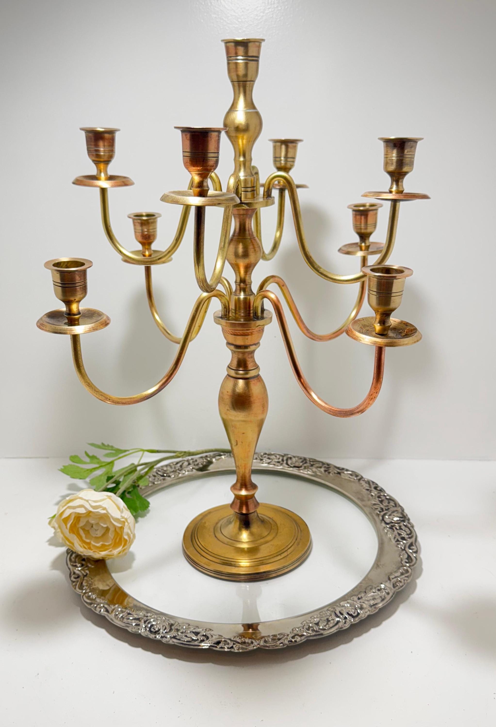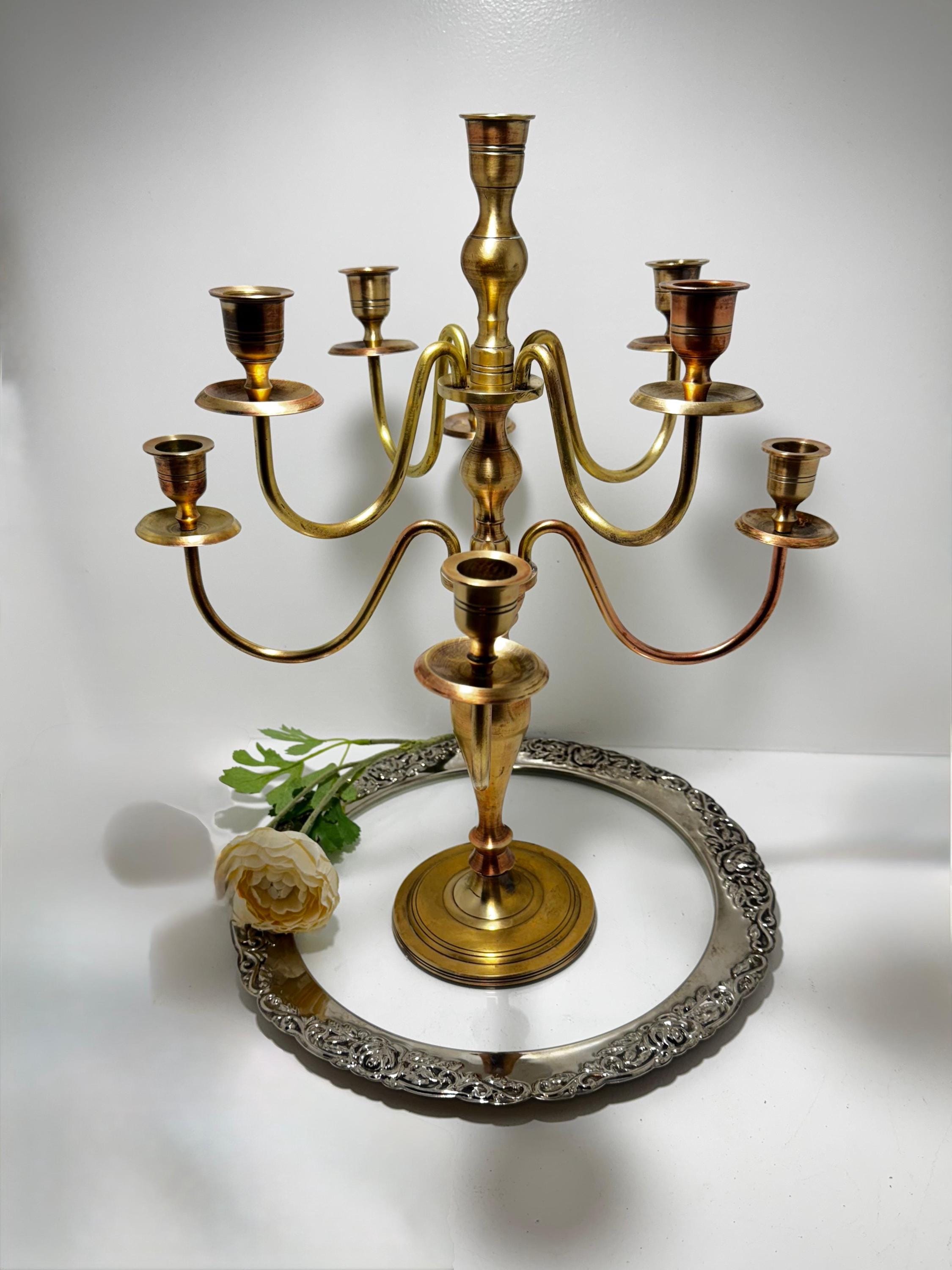 Vintage Solid Brass 7-Arm Candelabra – Classic European Candle Holder